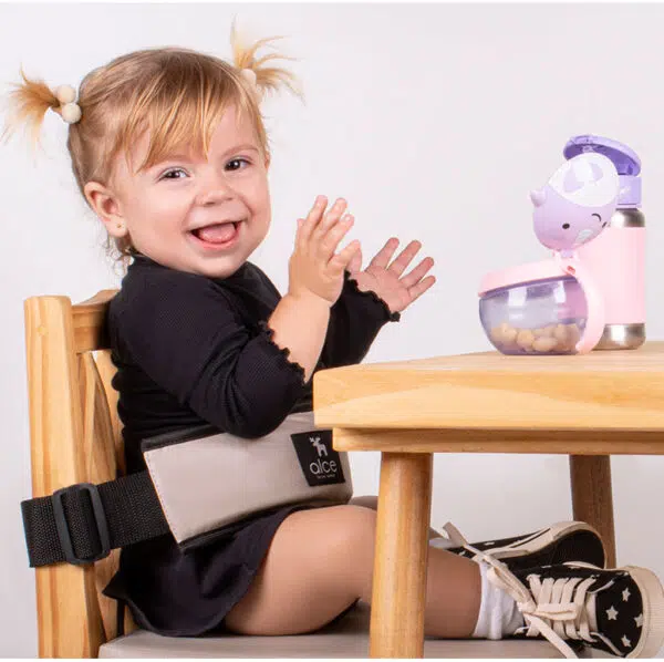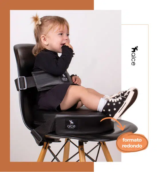 O assento auxilia nesse momento incluindo a criança a mesa da família, pois uma das formas mais efetivas de aprendizagem para o bebê é a imitação.