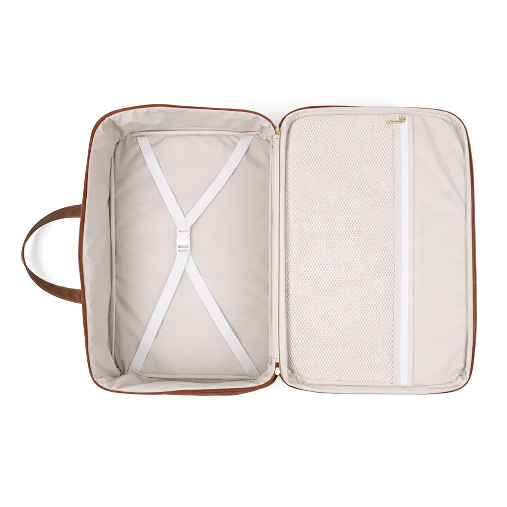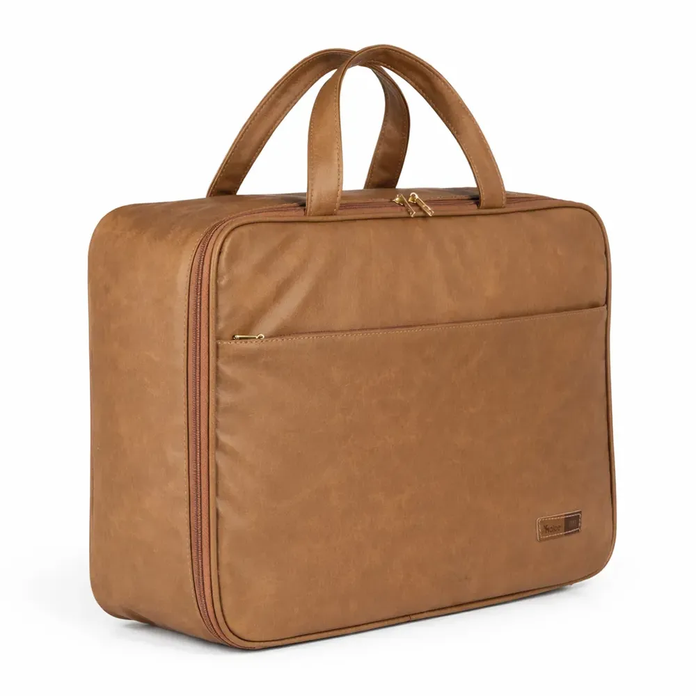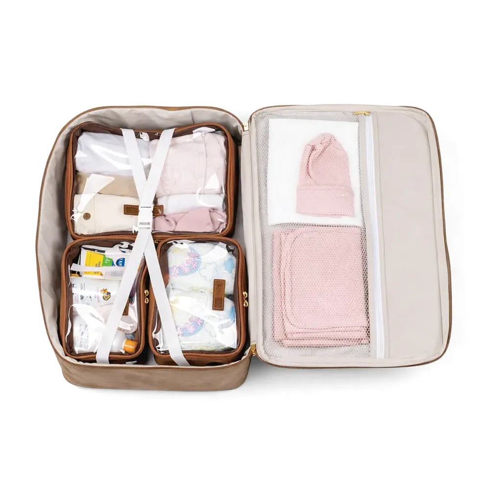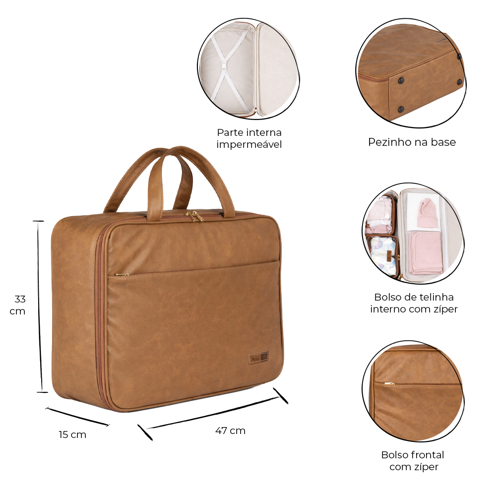 Com visual sofisticado e acabamento com aspecto de couro, a Mala Corah se integra facilmente aos looks da mamãe e às demais peças da coleção. Seu design foi pensado para ir além da maternidade, sendo uma excelente escolha também para viagens e compromissos futuros (pode ser levada a bordo como mala de mao) mantendo sua relevância ao longo do tempo.