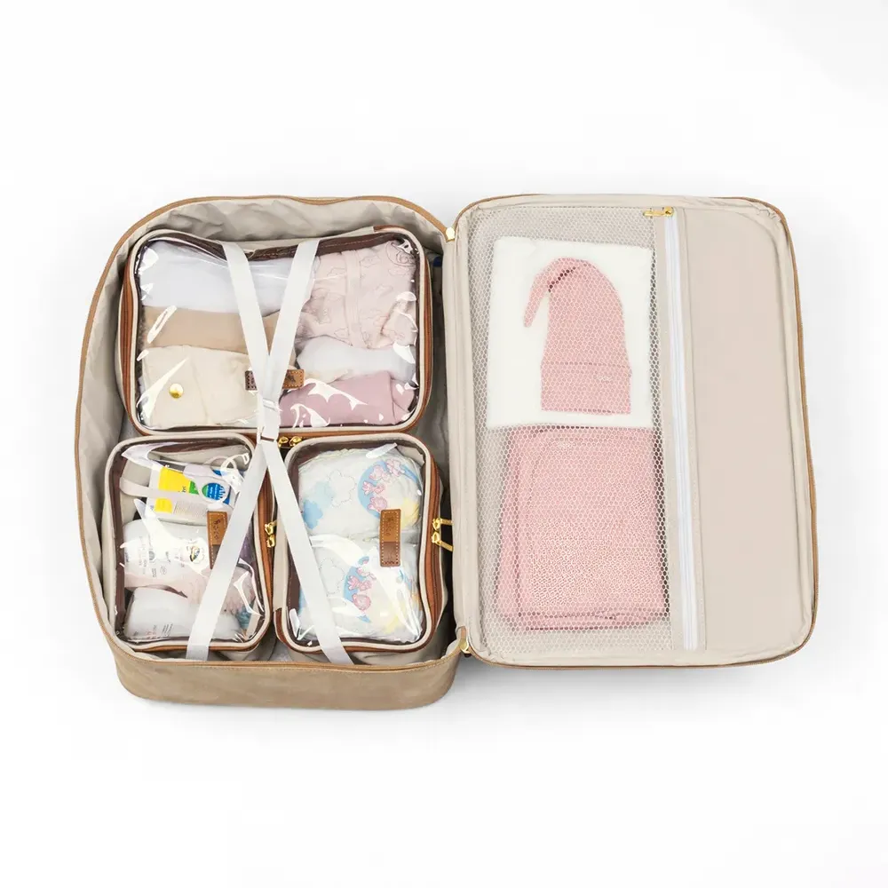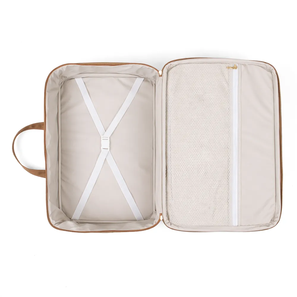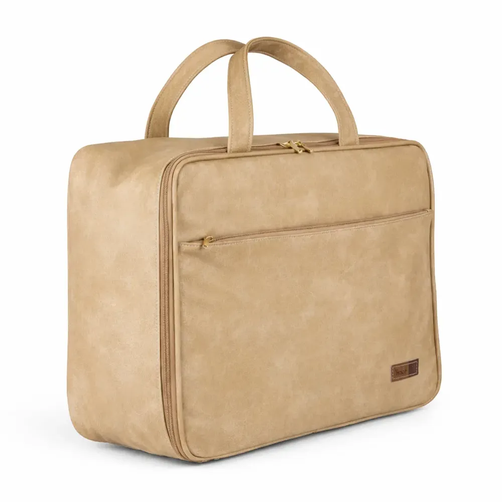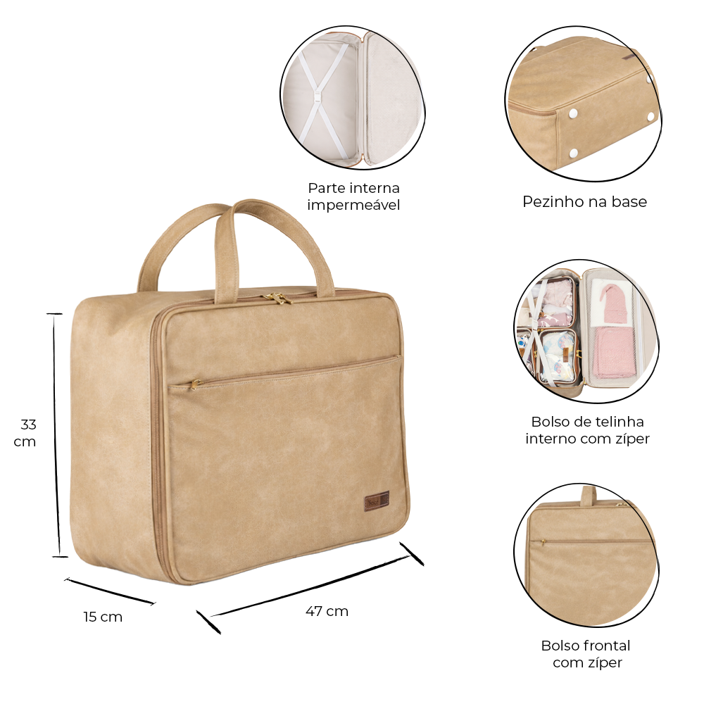 Com visual sofisticado e acabamento com aspecto de couro, a Mala Corah se integra facilmente aos looks da mamãe e às demais peças da coleção. Seu design foi pensado para ir além da maternidade, sendo uma excelente escolha também para viagens e compromissos futuros (pode ser levada a bordo como mala de mao) mantendo sua relevância ao longo do tempo.