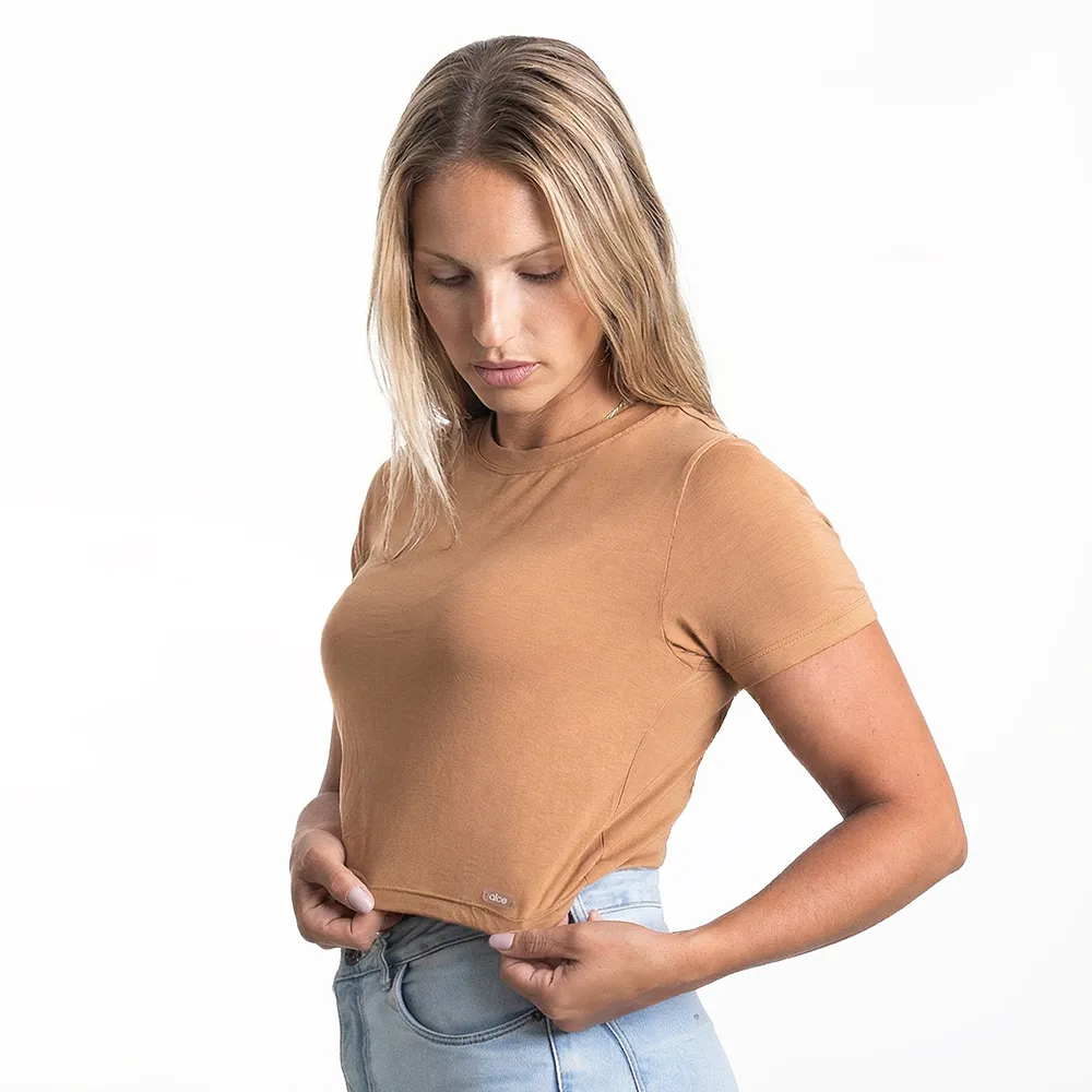 A T-shirt Amamentação Caramelo se encaixa na sua rotina com leveza, acompanhando você em cada fase da maternidade. Confortável, prática e cheia de estilo.